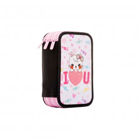 Penar cu 3 fermoare model pentru fete, imprimeu pisicuta "I love you".