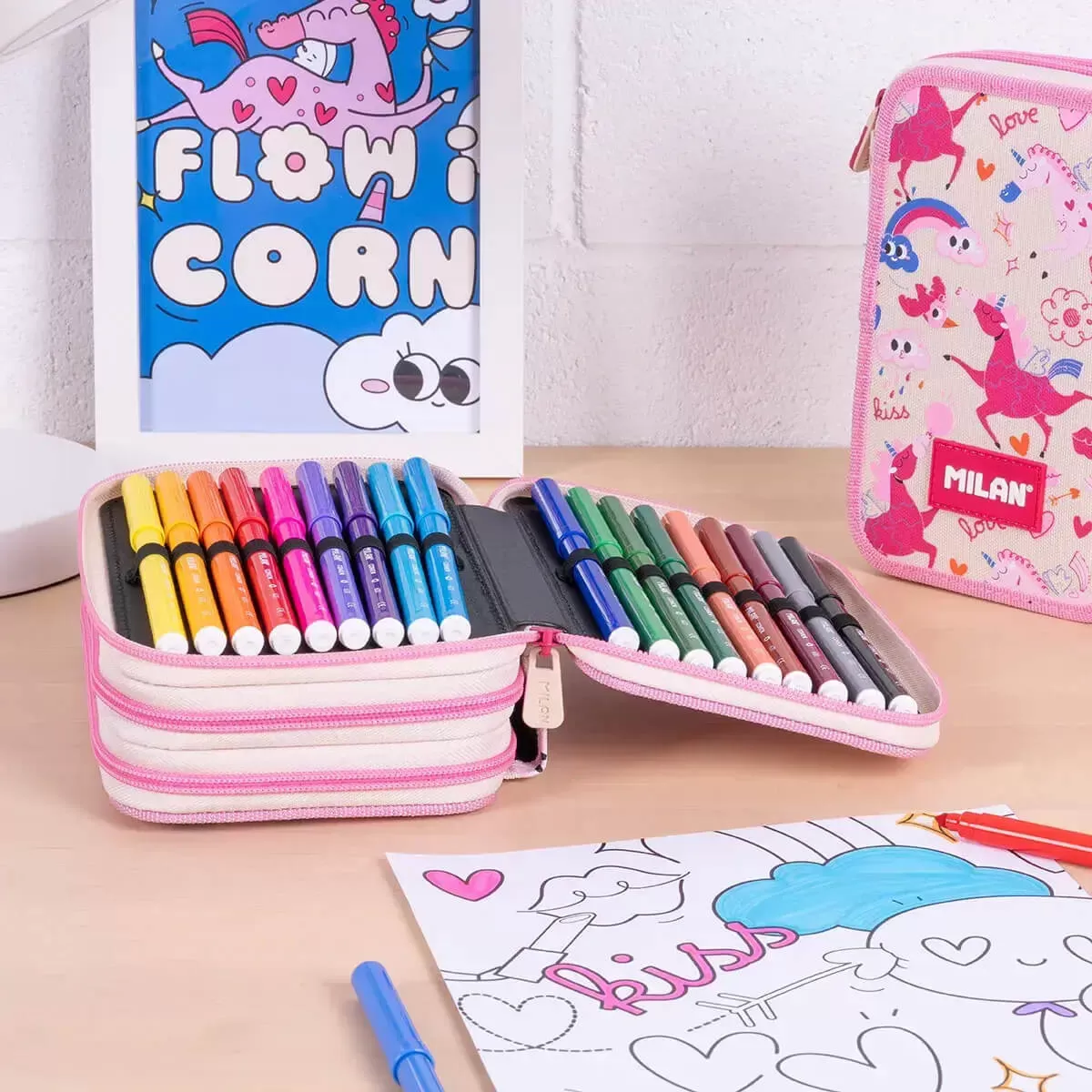 Penar fete echipat, 3 compartimente, unicorni Milan