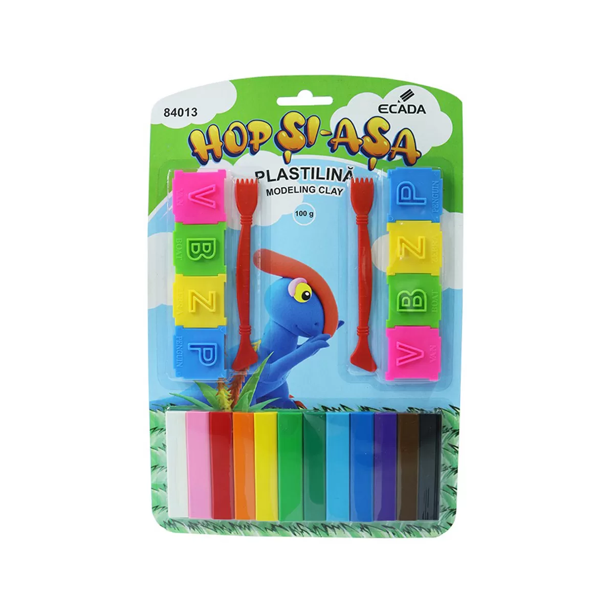 Plastilina 12 culori cu forme, 100g Ecada