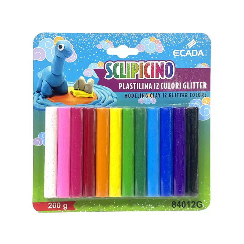 Plastilina 12 culori cu sclipici, 200g Ecada