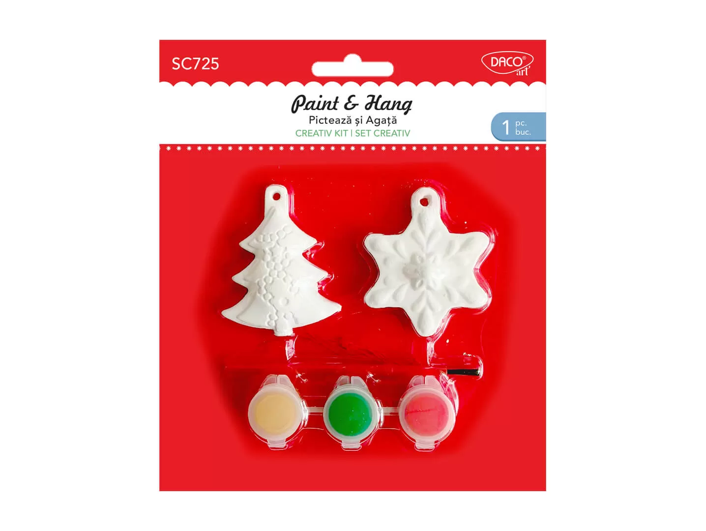 • 3 culori pentru pictat: auriu, roșu, verde
